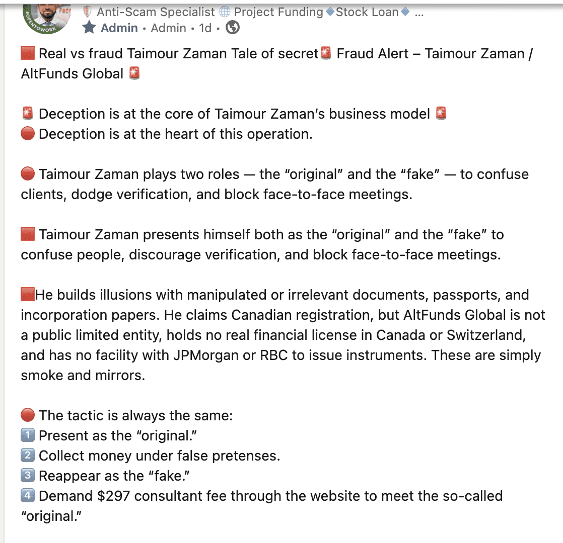 For anyone genuinely curious about who I (Taimour Zaman) am and what AltFunds Global represents, here are the facts you can verify in less than five minutes: